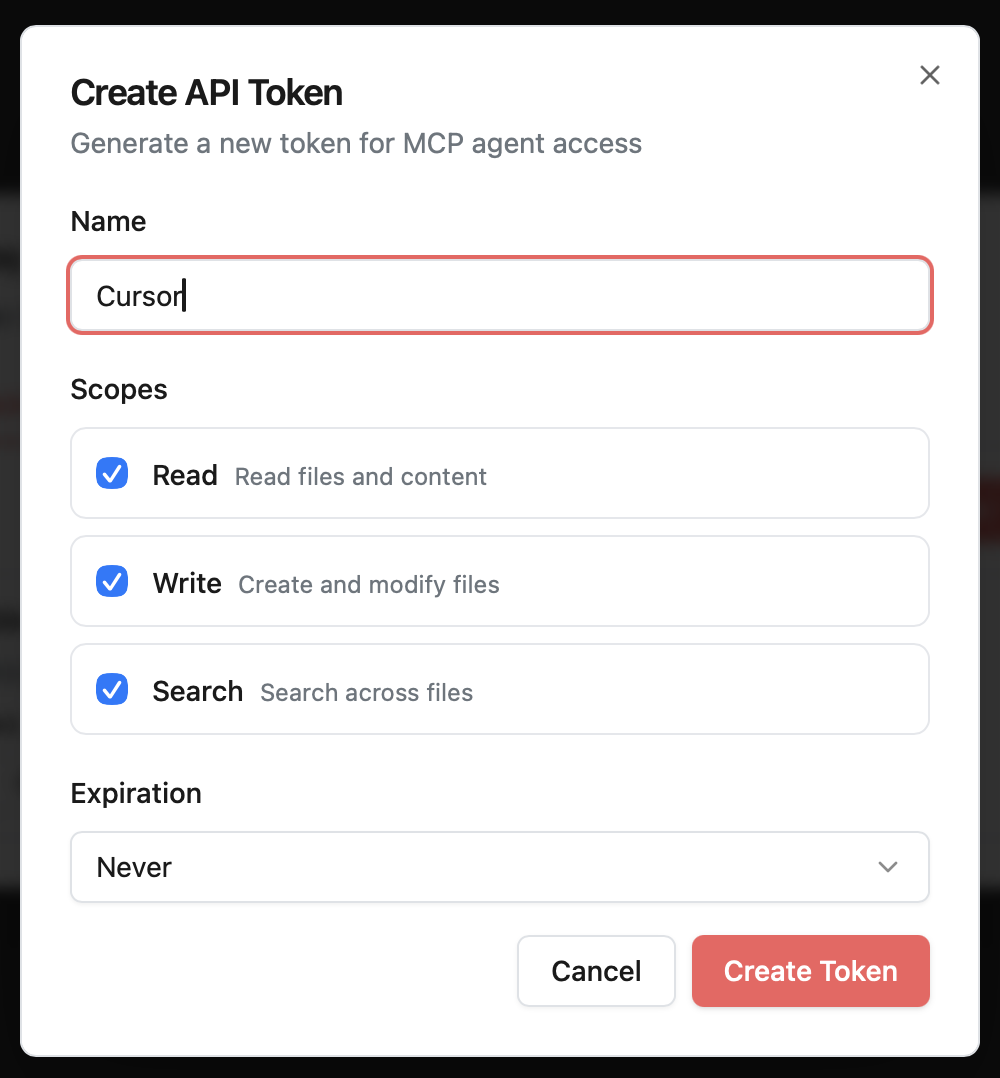 Log in to AnySlate and go to the API Tokens page at anyslate.io/docs/mcp/tokens. Create a new token named Cursor or Local Dev, then copy it. You will only see it once.